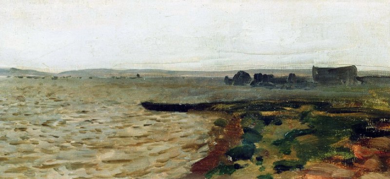 "Берег реки", XIX Холст, масло. 14,2 х 32,1 см 📍Тверская областная картинная галерея, Тверь ❤️ Галерея Исаака Левитана