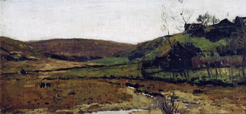 "Деревня. Хотьково (Долина реки)", 1890е Холст на картоне, масло. 17 х 34 см 📍Тульский областной художественный музей, Тула ❤️ Галерея Исаака Левитана
