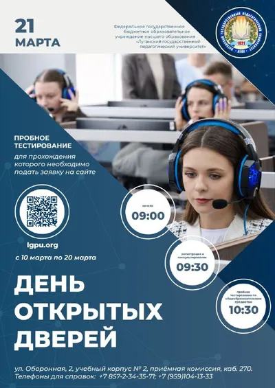 📢 Вниманию абитуриентов и их родителей! Луганский государственный педагогический университет приглашает всех желающих принять участие в ПРОБНОМ ТЕСТИРОВАНИИ, которое состоится 21 марта 2026 года. Э