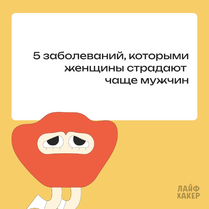 5 заболеваний, которыми женщины страдают чаще мужчин — собрали их в карточках. А подробнее о каждом рассказали в статье совместно с врачами: читать → 👩⚕️ Подписаться