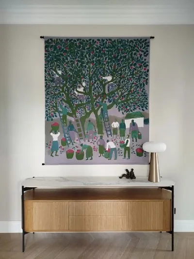 Гобелен "Сбор яблок" в размере 174х150 см. в интерьере.
