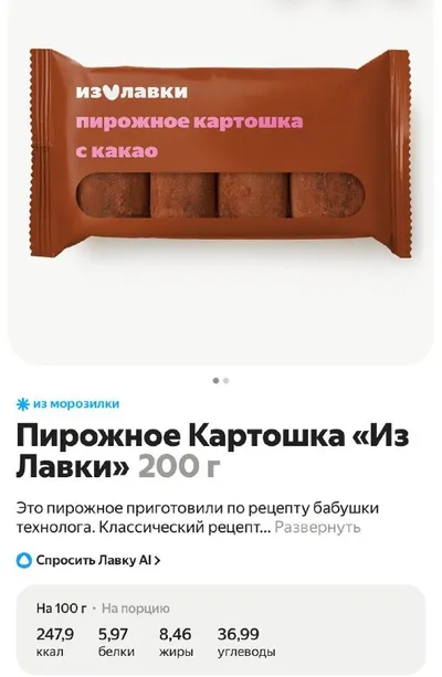 Была у меня раньше на канале рубрика подборок еды из разных доставок, вот думаю, может надо возобновить? Что думаете?🙂↔️ А пока что покажу вам 2 топовые находки в лавке: • Пирожное картошка Я не лю