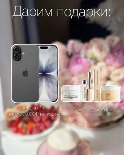 Дарим IPhone 17 (или 60.000₽ на карту) и бокс косметики. Условия участия: 1. Добавить к себе нашу ПАПКУ 2. Нажать кнопку «Участвую!» 1 место - iPhone 17 или 60.000₽ на карту (рандомно выберет бот)