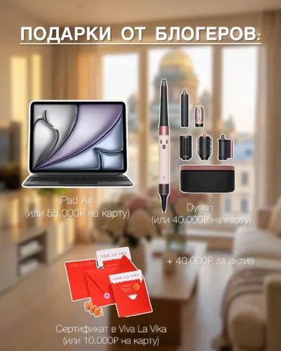 Дарим iPad (или 55.000₽), Dyson (или 40.000₽), сертификат в Viva La Vika (или 10.000₽) + призы за актив Условия участия: 1. Добавить к себе нашу ПАПКУ 2. Нажать кнопку «Участвую!» 1 место - iPad ил
