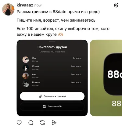 Раздаю инвайты в 88date в своем трэдс)