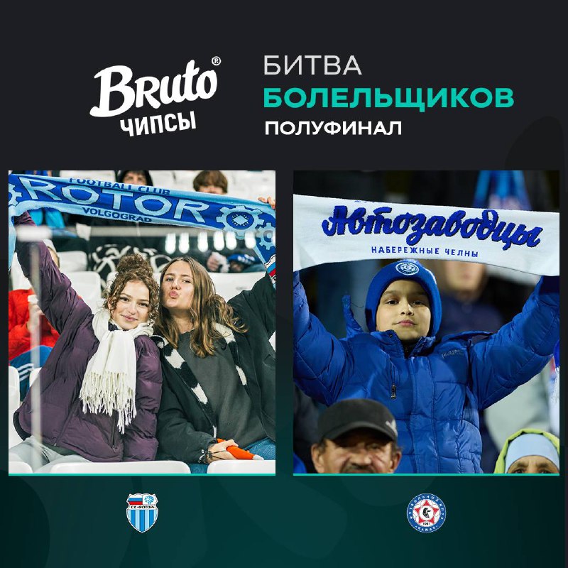 Вслед за #ЛучшаяЛигаМира возвращается и Bruto Битва болельщиков 🙌 Первая полуфинальная пара – «Ротор» против «КАМАЗа» 🤜🤛 Всё, что нужно – прожать реакции за любимый клуб 👇 ❤️, если вы за «Ротор