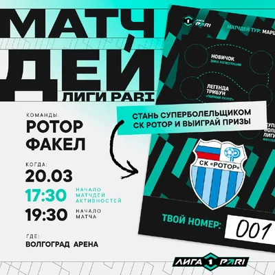 Матчдей Лиги PARI — уже завтра на «Волгоград Арене» ⚽ За два часа до старта матча #РоторФакел (17:30) на стадионе начнёт действовать специальная зона с матчдей активностями. Перед матчем зрители смо