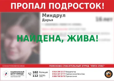 Даша найдена! Всем спасибо! 🚩Обратиться на горячую линию