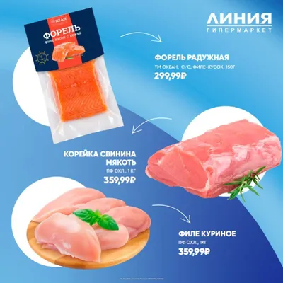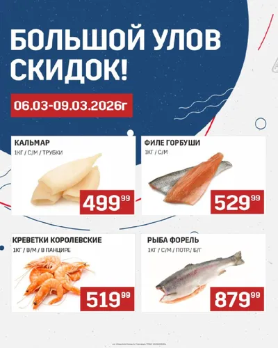В ЛИНИИ большой улов скидок!🐟 С пятницы по воскресенье у нас наступает время суперцен! Пора разнообразить привычное меню. Уже сегодня в наших гипермаркетах большой выбор выгодных предложений. Кальм