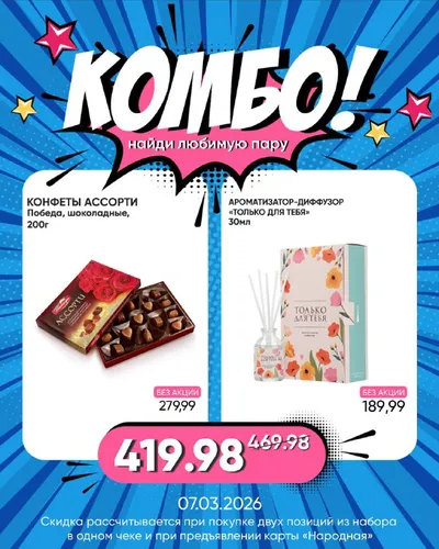 Праздничное КОМБО! 🌷 Всё ближе 8 Марта, а мы уже готовы удивлять! Безупречное сочетание по выгодной цене! 5, 6, 7 и 8 марта ждём вас за приятными покупками к Международному женскому дню! Порадуйте с
