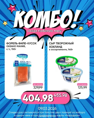 Встречайте КОМБО в ЛИНИИ! 💙 Уже сегодня и 10 марта вас ждут новые скидки при покупке двух позиций из набора! Пришло время найти любимую пару! 🔹филе форели + творожный сыр, 🔹риет из тунца + францу