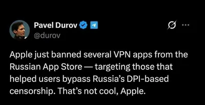 Дуров раскритиковал Apple за удаление VPN-сервисов из российского App Store Дуров против Apple Apple удалила из российского App Store ряд VPN-приложений — в первую очередь тех, которые позволяли пол