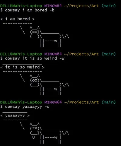 Самая крутая утилита в Linux 😱 Что это cowsay - это консольная утилита, которая выводит текст в ASCII-облачке, а рядом рисует корову. Иногда вместо коровы можно выбрать другого персонажа. Установк