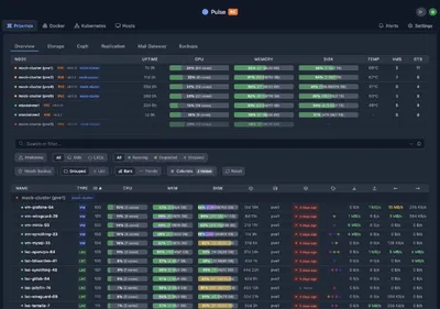 Pulse: мониторинг Proxmox, Docker и Kubernetes в одном UI Pulse - это самый заметный open-source dashboard для мониторинга Proxmox, Docker и Kubernetes. Он собирает метрики и показывает их в одном ве