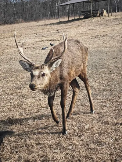 Наших пятнистых оленей можно увидеть совсем рядом - на расстоянии вытянутой руки и живого восхищения.✨ Большую часть времени они проводят в своей любимой лесной зоне: гуляют среди деревьев, отдыхают