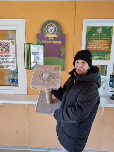 Когтеточка нашла своих хозяев.🤩 Ко Всемирному дню кошек мы разыгрывали фирменную когтеточку от парка "Белый лев". Вчера победительница приехала за призом и подарок уже дома!😊 У неё живут три кота,