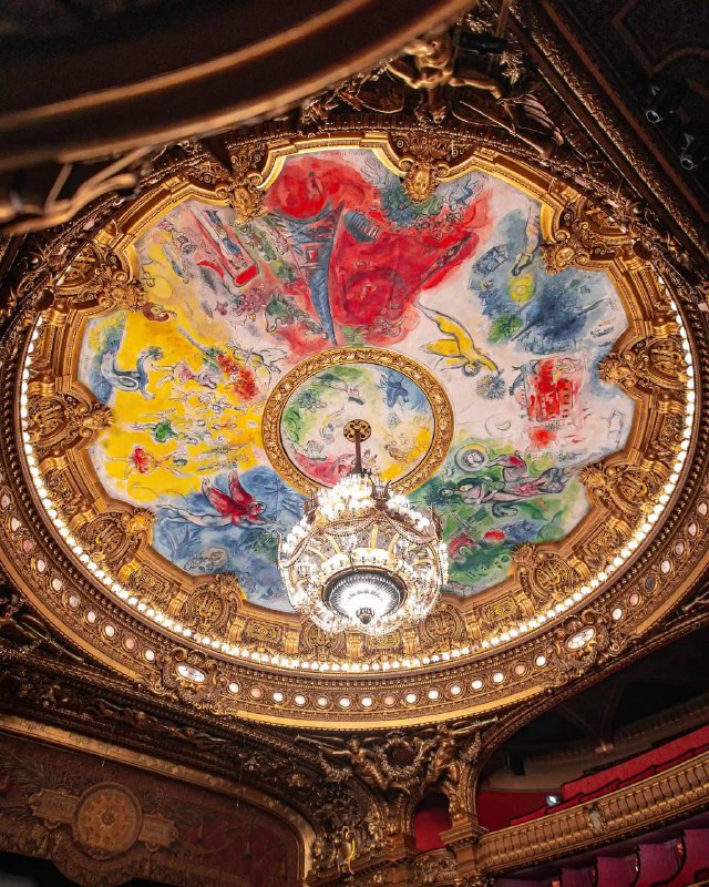 Колоссальный проект Марка Шагала для главной сцены Франции — плафон в авторском стиле художника в зале Оперы Гарнье ✨ Шагал взялся за этот проект, будучи уже известным во всем мире, ему было 77 лет,