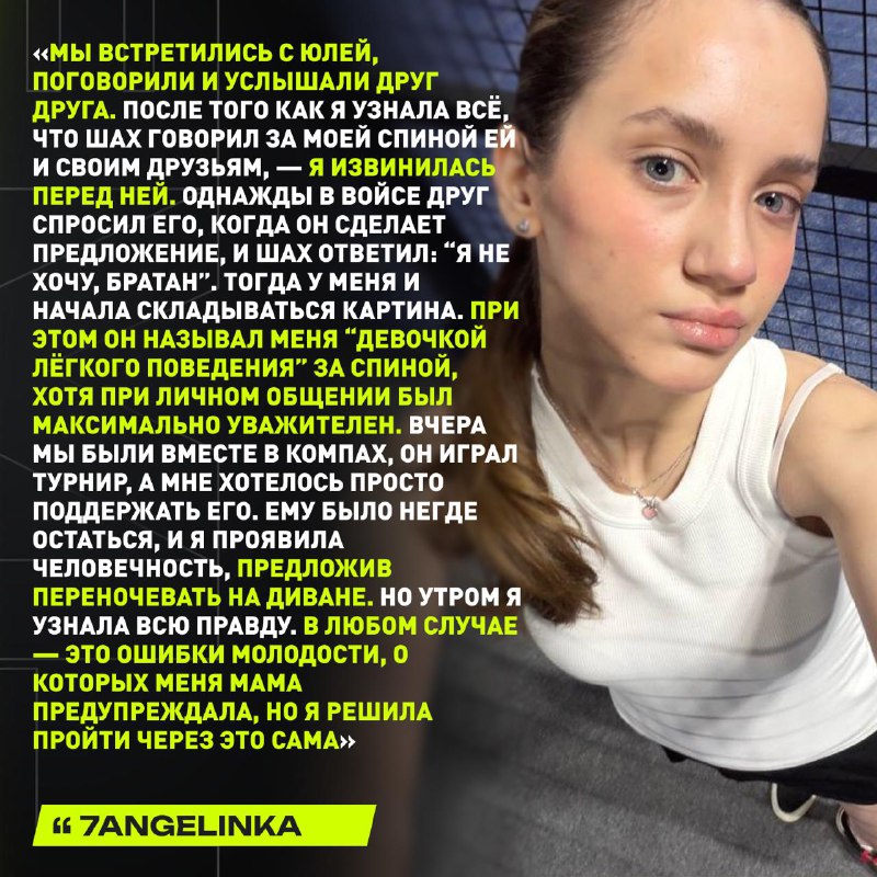 🔞 Стример Шах изменил своей девушке с 7Angelinka Об этом девушка стримера заявила в собственном Instagram. Она выложила фото 7Angelinka с текстом: Запомните эту малолетнюю шлю***шку в лицо, со все
