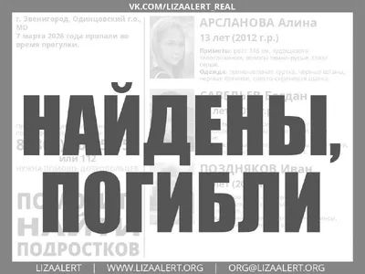 Добровольцы «ЛизаАлерт» продолжают поиск троих детей, пропавших в Звенигороде. 12-летний Иван, 12-летний Богдан и 13-летняя Алина отправились на прогулку 7 марта 2026 года и до настоящего времени их