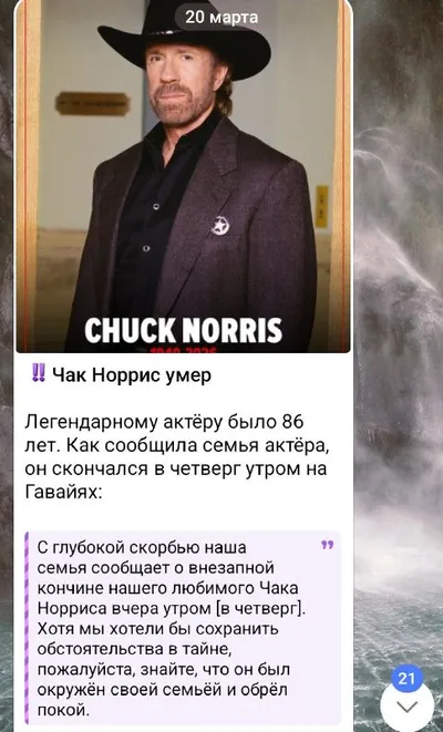 Пока я сам лежал а реанимации с первым в жизни инсультом - ушёл из жизни Чак Норрис. Символизма конечно мало, он явно больше меня прожил. Печально конечно, только недавно у него ДР было 🥸