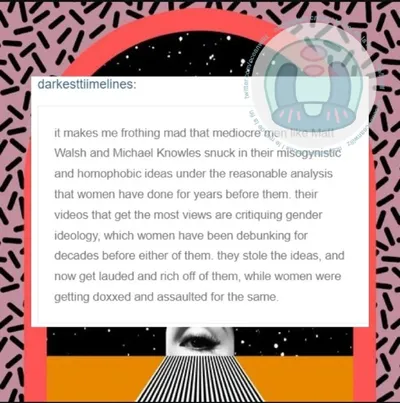 Меня до пены у рта злит, что такие посредственные мужчины как мэтт уолш и майкл ноулс (прим. пер. — политические комментаторы) подсовывают свои мизогиничные и гомофобные идеи под видом разумного анали