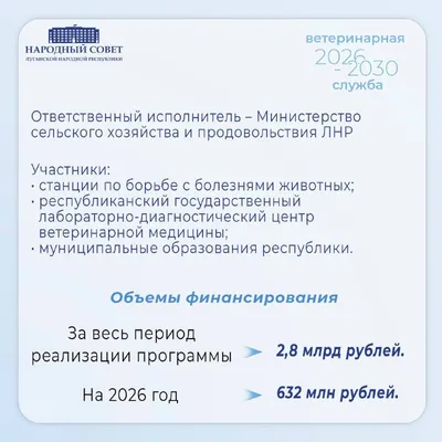В республике запланировано развитие государственной ветеринарной службы. На профилактику и борьбу с заболеваниями животных, а также обеспечение работы ветеринарных служб предусмотрено около 2,8 млрд