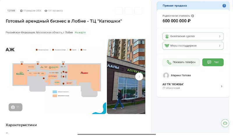 В Лобне продают ТЦ «Катюшки» за 600 миллионов рублей. Выставлен на продажу ТЦ «Катюшки» — готовый бизнес со 100% заполняемостью и окупаемостью в 10 лет. Среди арендаторов значатся «Ашан», «ВкусВилл»,