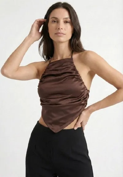 Вещь дня – топ от Wev Тут все идеально: модель халтер, драпировка, тонкие бретели, открытая спина, красивый шоколадный цвет. И приятная цена 😳 Я в ТГ | Я в VK | Я в MAX