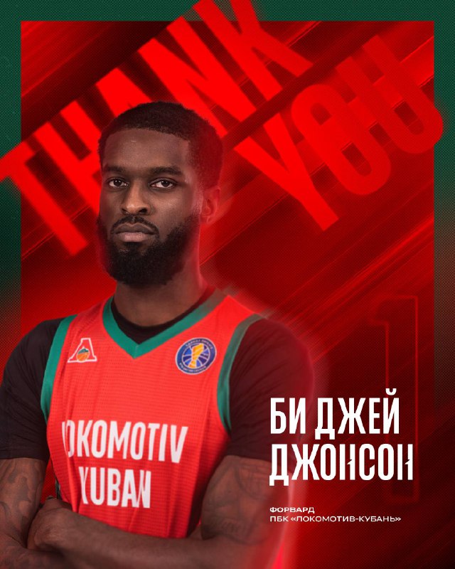 Спасибо, Би Джей! 🤝 ПБК «Локомотив-Кубань» и американский форвард пришли к соглашению расторгнуть контракт. Джонсон вернулся в состав красно-зелёных по ходу этого сезона и принял участие в 20 офици
