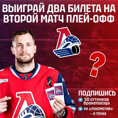 🚂 ДАРИМ ДВА БИЛЕТА НА ВТОРУЮ ИГРУ «ЛОКОМОТИВА» В 1/8 ПЛЕЙ-ОФФ 🔥 Всего два условия: 1. Подпишись на «Локомотив и точка» 2. Подпишись на «50 оттенков бронепоезда» Нажми на кнопку «Хочу на хоккей» П