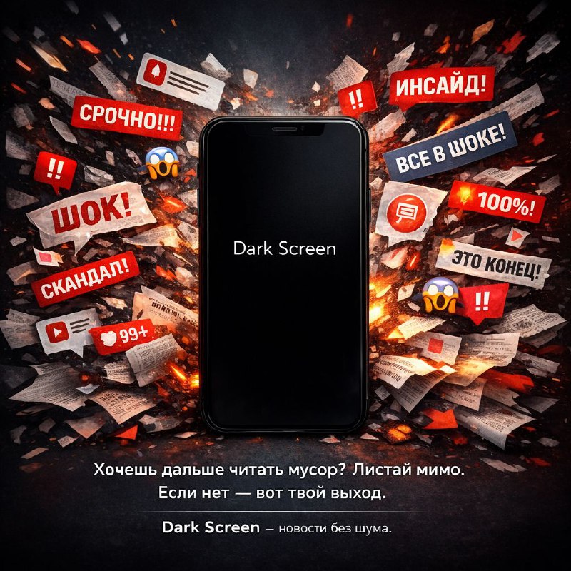 Хочешь дальше читать мусор? Тогда листай мимо. Если нет — вот твой выход. 90% новостей в Telegram — это: — перепосты без проверки — громкие заголовки без фактов — эмоции вместо аналитики Dark Screen