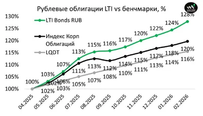 #LTI_портфель #LTI_облигации Портфели облигаций Результаты в феврале: - Рублевый +2.8% vs +1.4% индекс корп бондов и 1.2% LQDT - Валютный: 0% vs -0.3% по индексу валютных бондов на Мосбирже Результ
