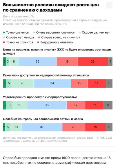 Россияне морально готовятся к взлету цен на продукты и ЖКУ “Около 82% россиян считают, что в ближайший год цены на ЖКХ и еду будут расти быстрее их доходов, показал опрос «Платформы». При этом каждый