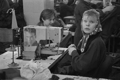 Девушка, предпочитающая Жан-Клода Ван Дама, застигнутая врасплох в момент работы на швейной машинке, Ленинградская область, 1993 год Эпоха 90-х