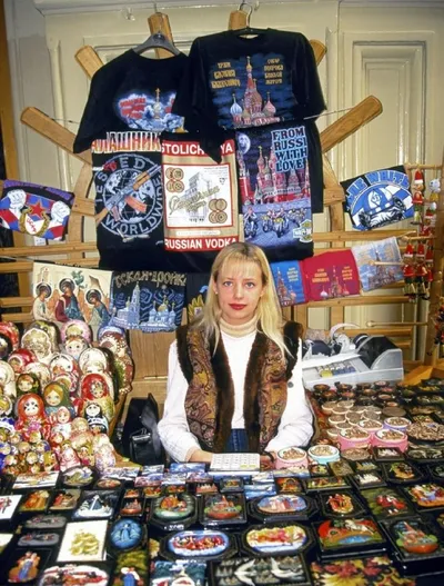 Торговля в ГУМе, переполненная изобилием сувениров, Москва 1998 год Эпоха 90-х