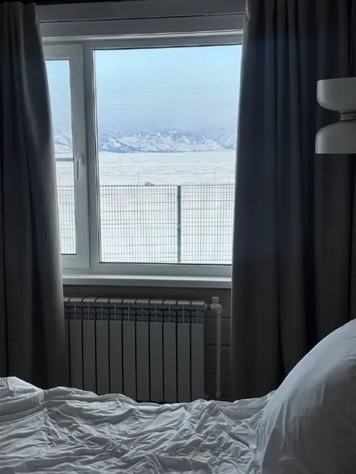 Второй день. Просыпаемся с видом на Байкал и идем на завтрак, он включен в стоимость проживания. Утепляемся во всё, что есть (если нужен список, что брать с собой, маякните, я напишу) и на такси отп