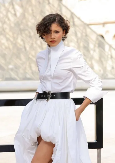 Уже замужняя Зендея почти в «свадебном платье» появилась на показе Louis Vuitton в Париже.