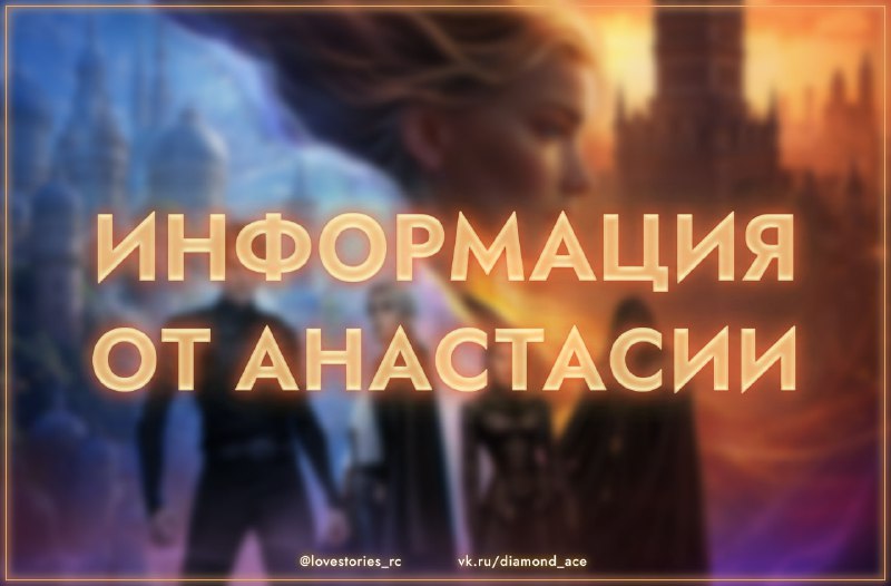 ИскусствоКанал посвящён творчеству любимой – Анастасии Савиной 💫 Истории из-под её пера: 💃 В ритме страсти ⛸️ По тонкому льду 🎤 Эдемов Сад ⚖️ Аверрис: Дитя Разлома Бот для предложения новостей: @lovestories_rc_bot Мы в ВК: vk.com/diamond_ace