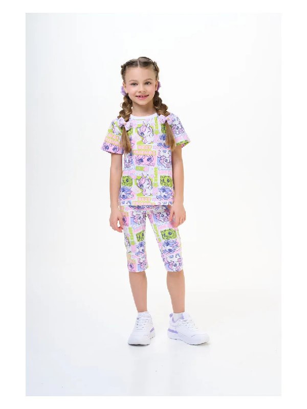 08:07 ТОВАР ЗАКОНЧИЛСЯ ****************** Велосипедки для девочки сиреневые с принтом KariKids Размеры: 98 104 110 116 122 Цена нов