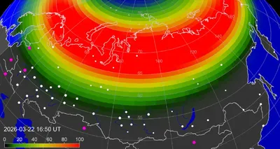 В ближайшие часы возможно наблюдение интенсивных северных сияний в европейской части страны Собственно, вся информация приведена в заголовке. Авроральный овал, интенсивность которого начала расти ещё