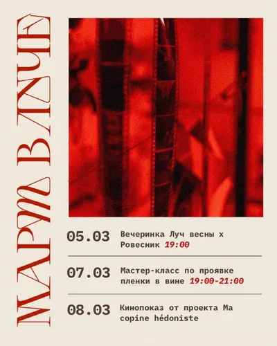 МАСТЕР-КЛАСС ПО ПРОЯВКЕ ПЛЕНКИ В ВИНЕ 7 МАРТА В 19:00!🍷 Мы нарушим правила аналоговой фотографии и проявим черно-белую пленку в самом настоящем вине. Узнаем, как этот напиток влияет на снимки и на ф