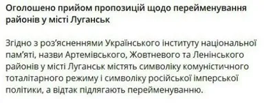 🔴В Луганске официально переименовали три района 🤷♂️Но только в Украине У них там целый конкурс был на новые названия 🙈Вот результаты: 🟡 Артёмовский район – Ольховский 🟡Жовтневый (он же Октя