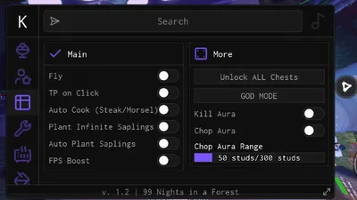 📣 Отличный скрипт на 99 Nights In The Forest ⚙ Функции: God mode Teleport Bring Stuff Killaura Chopaura И многое другое Без бана ✅ Без ключа ✅ Получить по кнопке ниже ⬇️