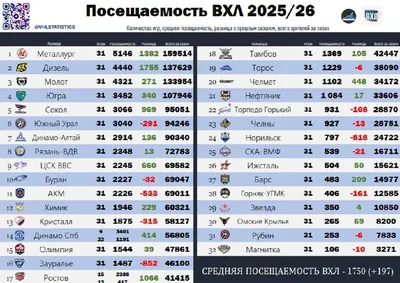 ⚡️ Статистика посещаемости матчей ВХЛ С такой посещаемостью новокузнецкий "Металлург" не был бы худшим в КХЛ. 3546 - Нефтехимик 4325 - Лада 4596 - Адмирал 5146 - Металлург Нк 5236 - Северсталь Не п