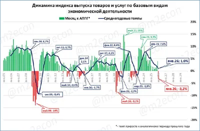 🇷🇺 Выпуск базовых отраслей: -3,2% в январе В январе выпуск базовых отраслей (ВБО) сократился на 3,2% к январю прошлого года. Напомним, что ВБО охватывает около 60% российского ВВП и кроме промпр