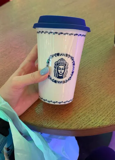 Купила в Stars Coffee стакан из коллаба с Гжелью. Для зарубежного контента 🤫 Я такая хулиганка. Если тебе интересно, как там продвигается моя карьера, ставь 🔥 Буду периодически рассказывать.