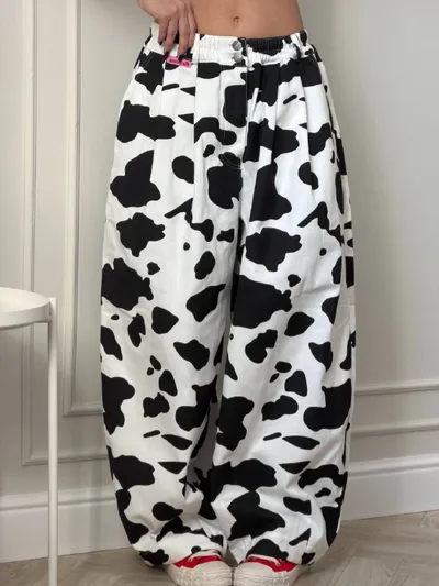 🐄 Cow print: тренд, который пасётся везде! Коровьи принты ворвались в моду как свежий глоток хаоса: чёрно-белые пятна, стиль 2026, микс леопарда и минимализма✨ Брюки бананы COW - 10.900₽ и многие