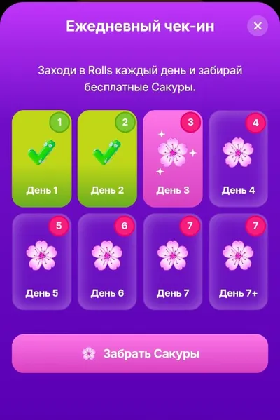 Не забывайте каждый день заходить в Rolls и забирать бесплатные сакуры🎁 Ведь за них вы можете выиграть кучу крутых призов! Потом не говорите, что я не предупреждал😎 ✍️✍️✍️✍️✍️✍️ ⭐️Дешевые звезды