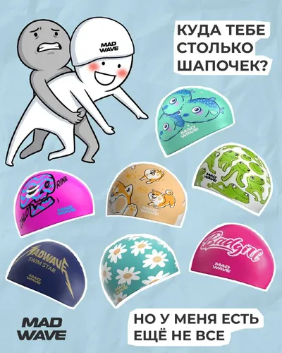 Шапочек много не бывает — факт💙 Заглядывайте в интернет-магазин Mad Wave забирайте шапочку для настроения. Одну, две или сразу несколько?😉