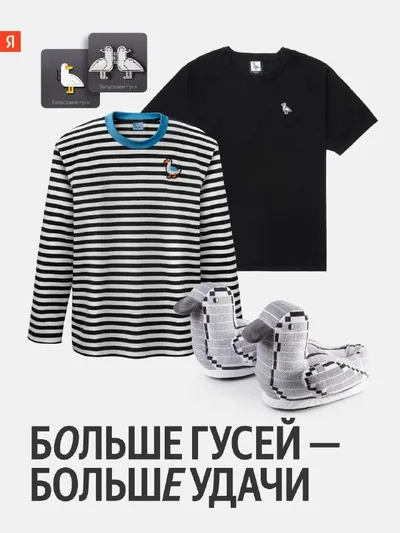 Два весёлых гуся. И не только! 🪿🪿 Гусь — один из самых любимых персонажей сотрудников Яндекса. И его не бывает слишком много! Собрали для вас наши товары с изображением птицы, которая приносит удач